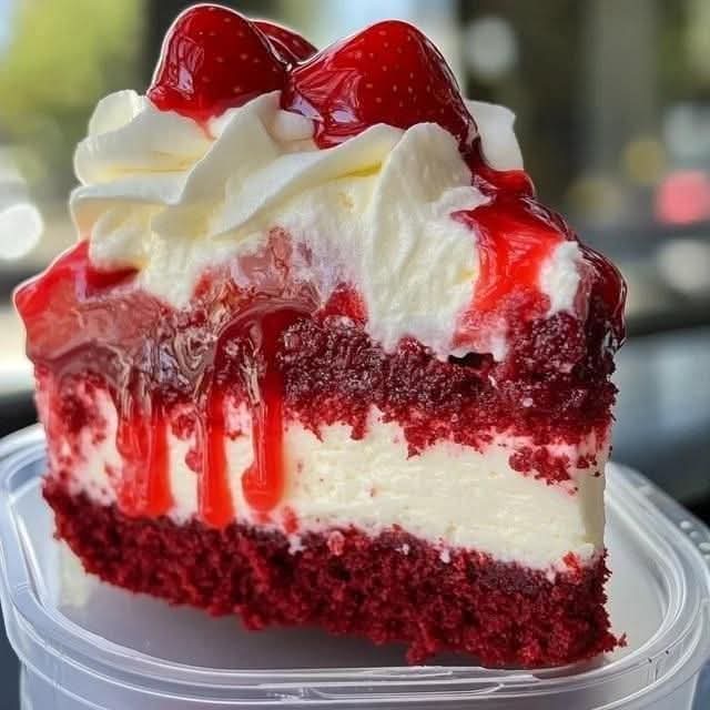 Have you ever tried combining the rich cocoa-tinged flavor of a classic Red Velvet Cake with the creamy tang of a cheesecake and the fresh brightness of strawberries?