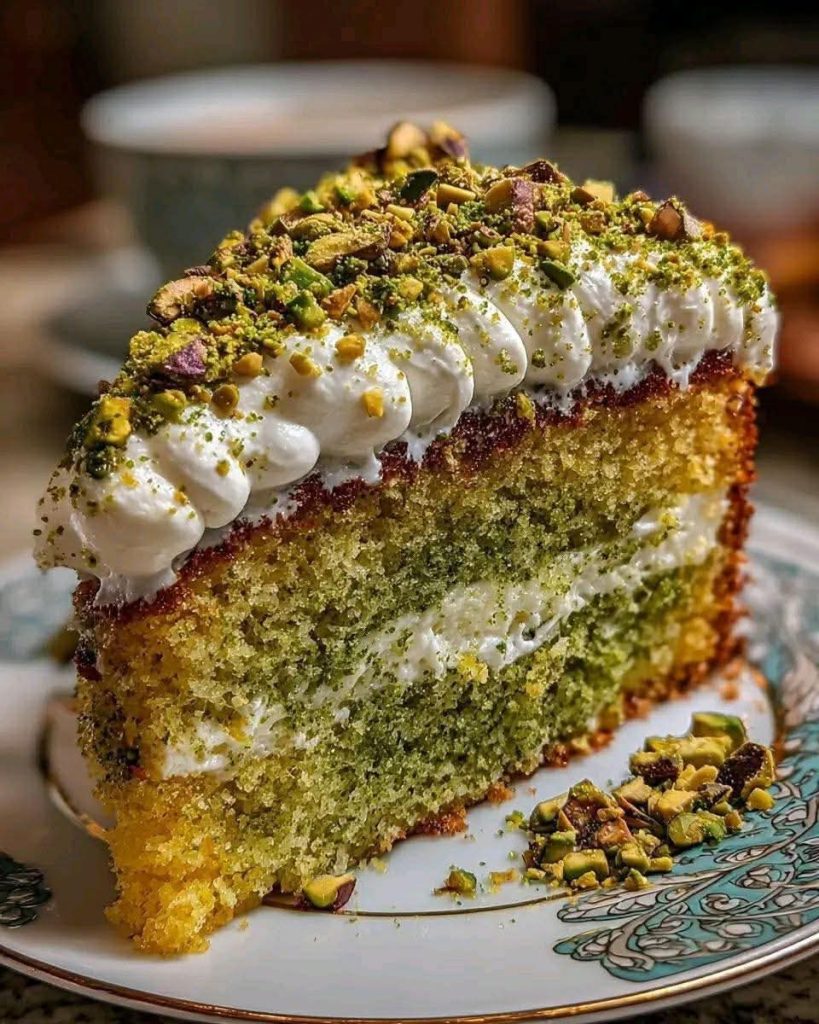 Pistachio Cake with Cream Cheese Whip – Soft, Nutty & Absolutely Dreamy!