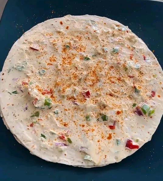 3. Assemble the roll-ups: Lay out the keto tortillas flat. On each tortilla, spread about 2-3 tablespoons (or as much as will evenly cover) of the cream-cheese-veggie mixture, leaving a small border near the edges for easier rolling.
