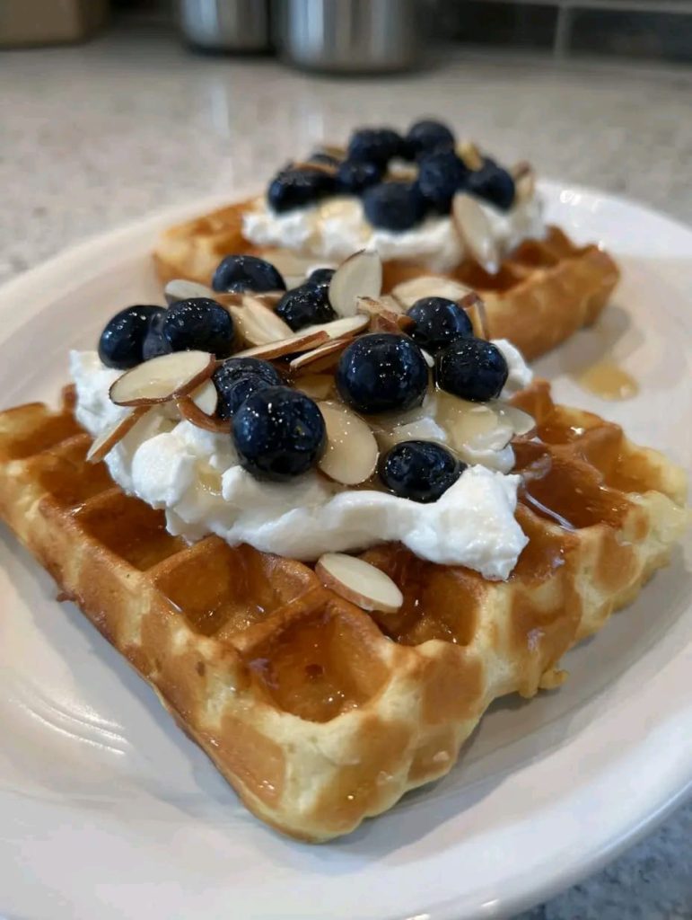 Keto Protein Waffles with Blueberries & Almonds