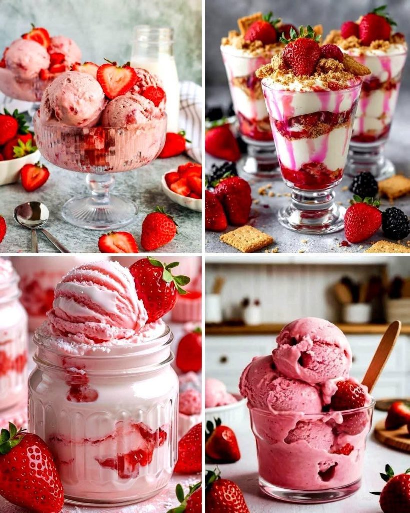 Top the ice cream with a generous layer of sliced fresh strawberries.