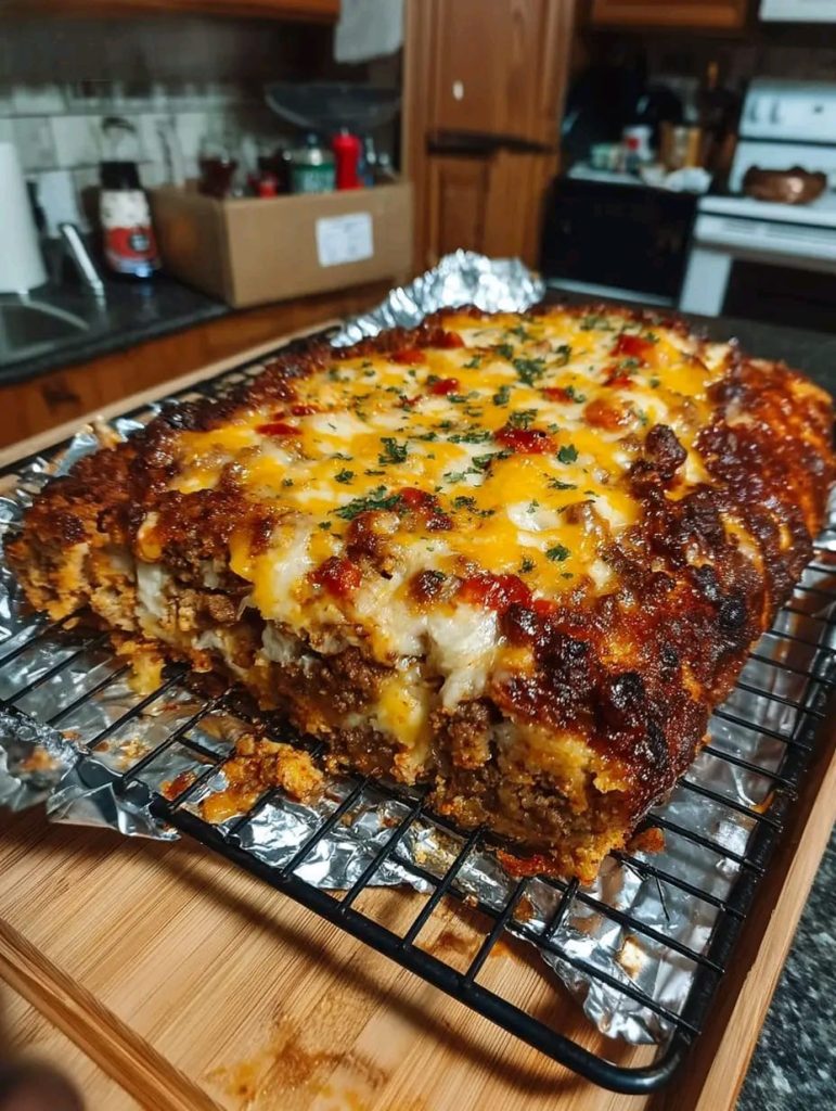 Flatten the meat mixture onto the pan, keeping it about 1 ½–2 inches thick.