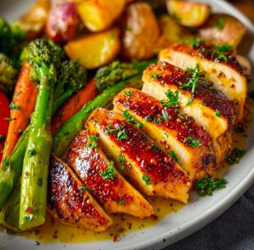 A wholesome, colorful, and flavor-packed meal that brings together tender honey mustard chicken, golden roasted potatoes, and perfectly baked veggies. It’s simple to prepare, full of sweet and tangy flavor, and perfect for busy weeknights or family dinners.