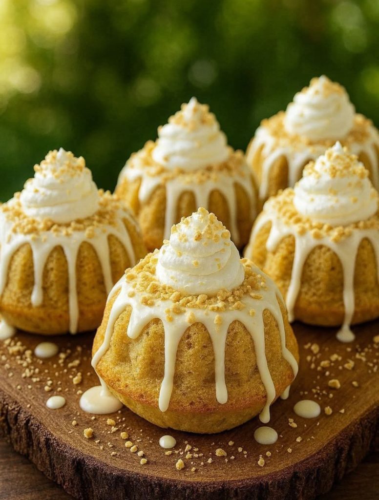 These homemade banana muffins are topped with whipped cream, cream cheese glaze, and crushed peanuts — the perfect balance of creamy, nutty, and sweet! You can even switch it up by adding vanilla biscuits or fresh fruit on top.