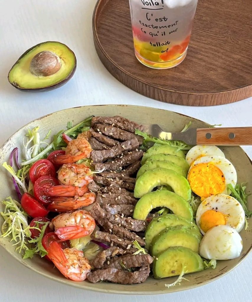 This Surf & Turf Avocado Salad brings together juicy beef, tender shrimp, and creamy avocado in one protein-packed bowl.
