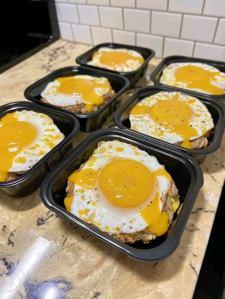 In a skillet, cook sausage patties over medium heat until browned and fully cooked. Place one patty in each meal prep container or ramekin.