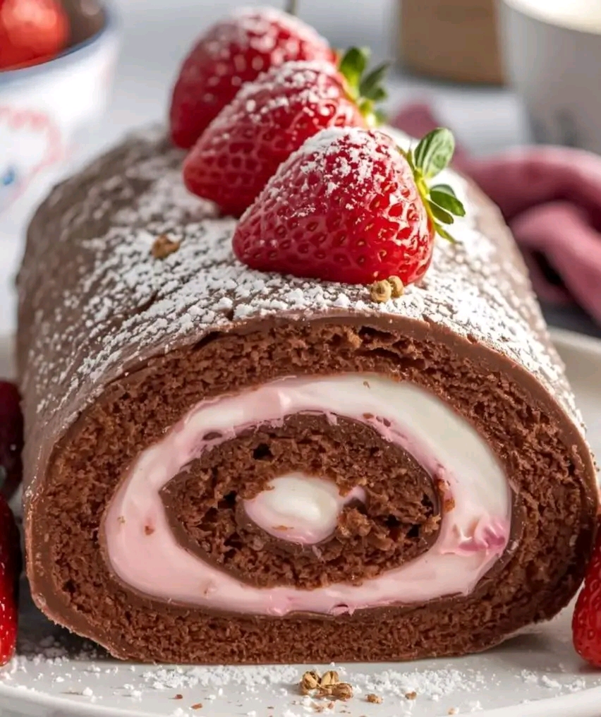 How to prepare Chocolate Swiss Roll With Strawberry & Cream Filling