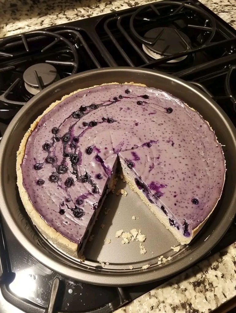 Gently fold in the blueberries — you can mash a few slightly to get that beautiful purple swirl seen in the image.