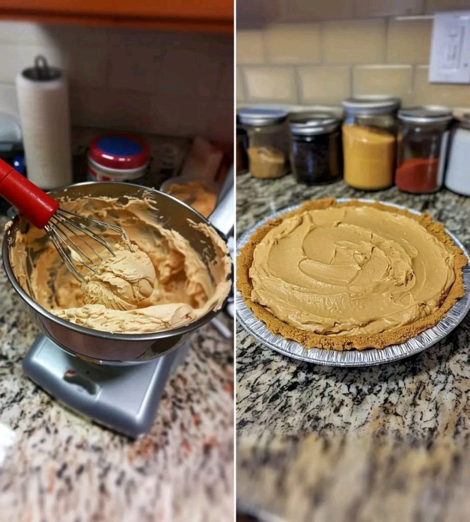 Scoop the filling into the pumpkin spice nut crust, spreading it evenly with a spatula.