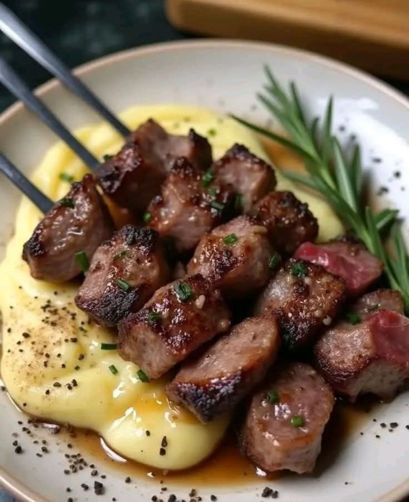Serve those beautiful steak skewers hot, right alongside a generous scoop of your warm, creamy mashed potatoes. It’s a comforting and flavorful meal that’s sure to bring smiles to the table!