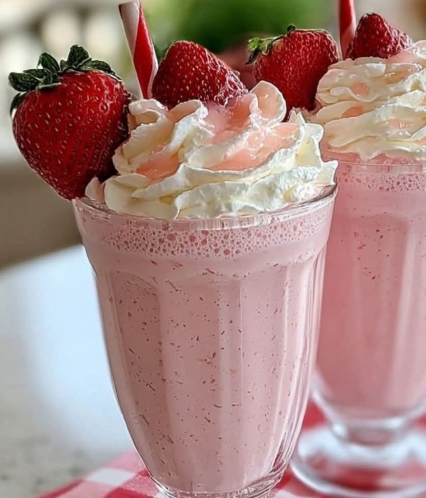 Pour into chilled glasses. Top with a dollop of whipped cream and a whole strawberry or slice or a light dusting of crushed freeze-dried strawberries for visual pop and texture contrast.