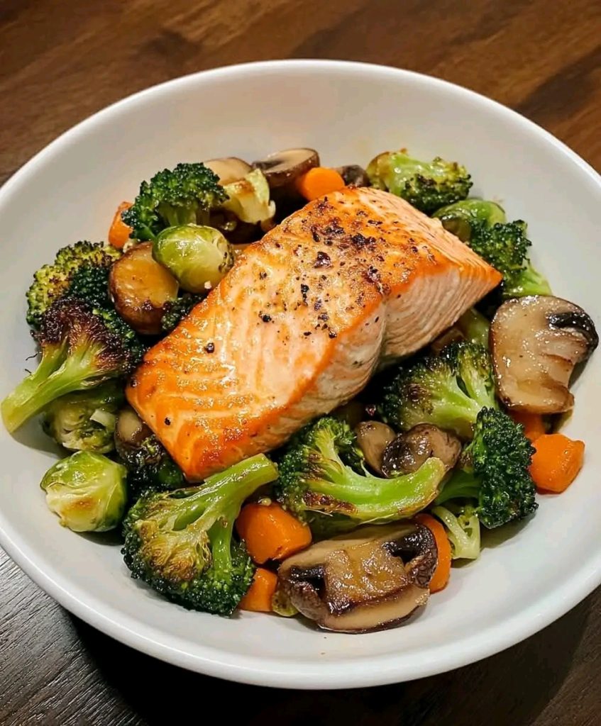 A simple, comforting bowl loaded with tender salmon and buttery vegetables — a warm “heaven in a bowl” moment.