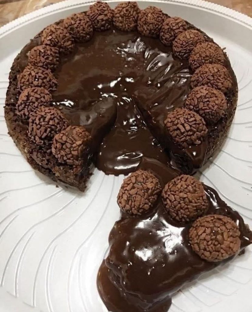 If you’re a true chocolate lover… this cake is dangerously delicious. Moist, rich, and smothered in glossy brigadeiro frosting — with little chocolate truffle bites decorating the edges — every slice melts right in your mouth. It’s the ultimate indulgence for birthdays, celebrations, or anytime you crave something unforgettable.