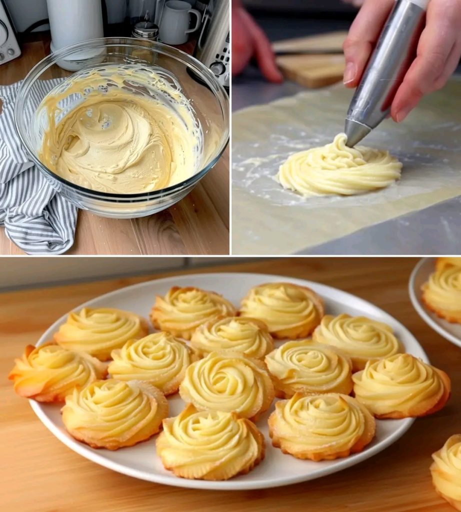 Pipe 2–3 inch swirls onto a parchment-lined baking sheet, just like classic Danish butter cookies.