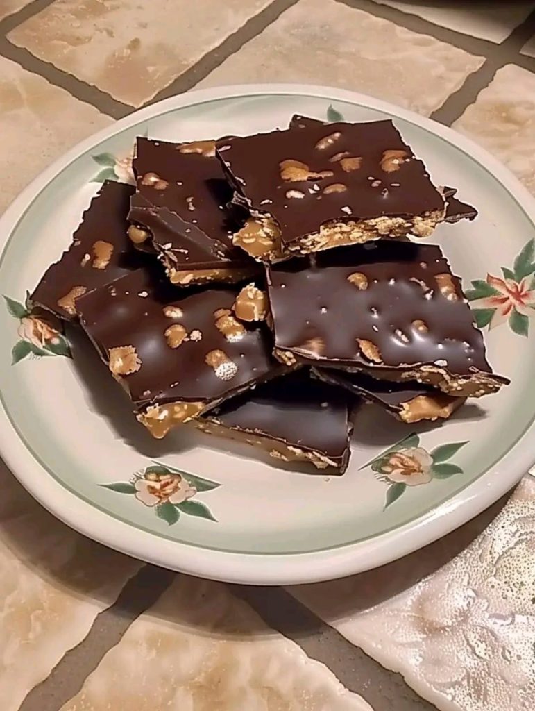 Pour the melted chocolate mixture evenly over the peanut butter base.