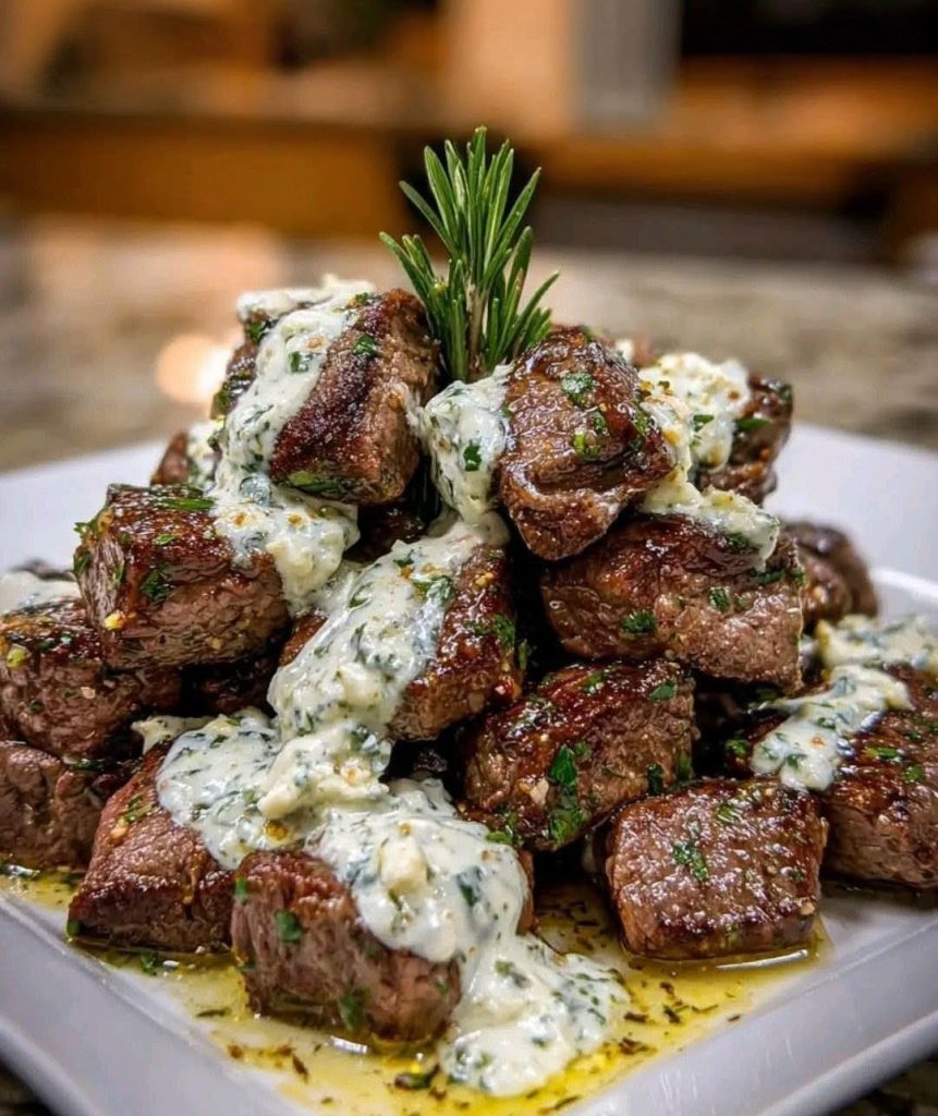 5️⃣ Combine and serve: Add the steak bites back to the skillet, tossing them in the sauce until evenly coated. Let them cook for another 1–2 minutes to heat through.