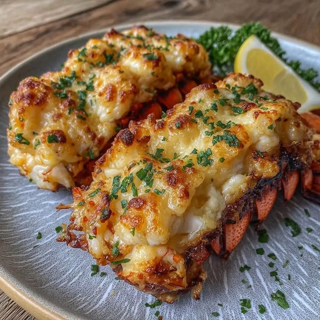 Brush the garlic Parmesan butter generously over the lobster meat.