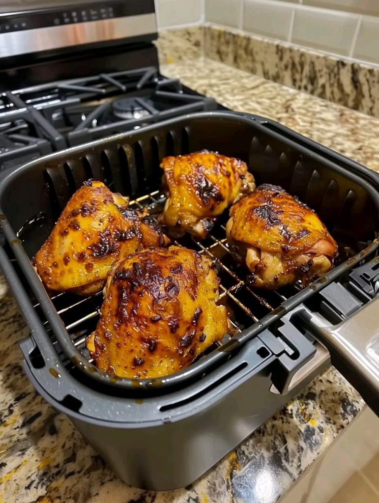Cook at your air fryer’s recommended temperature for about 15 minutes, or until the chicken reaches 165°F internally and is cooked through.