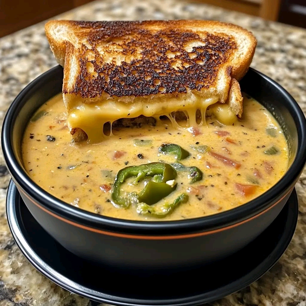 Ladle the soup into bowls and pair with grilled cheese dippers for dipping. Garnish with extra cheese, sliced jalapeños, or crumbled bacon if desired.