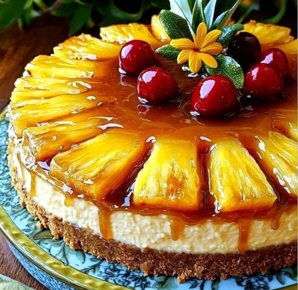 Creamy cheesecake combines with caramelized pineapple and light tropical flavors to create a delicious dessert reminiscent of