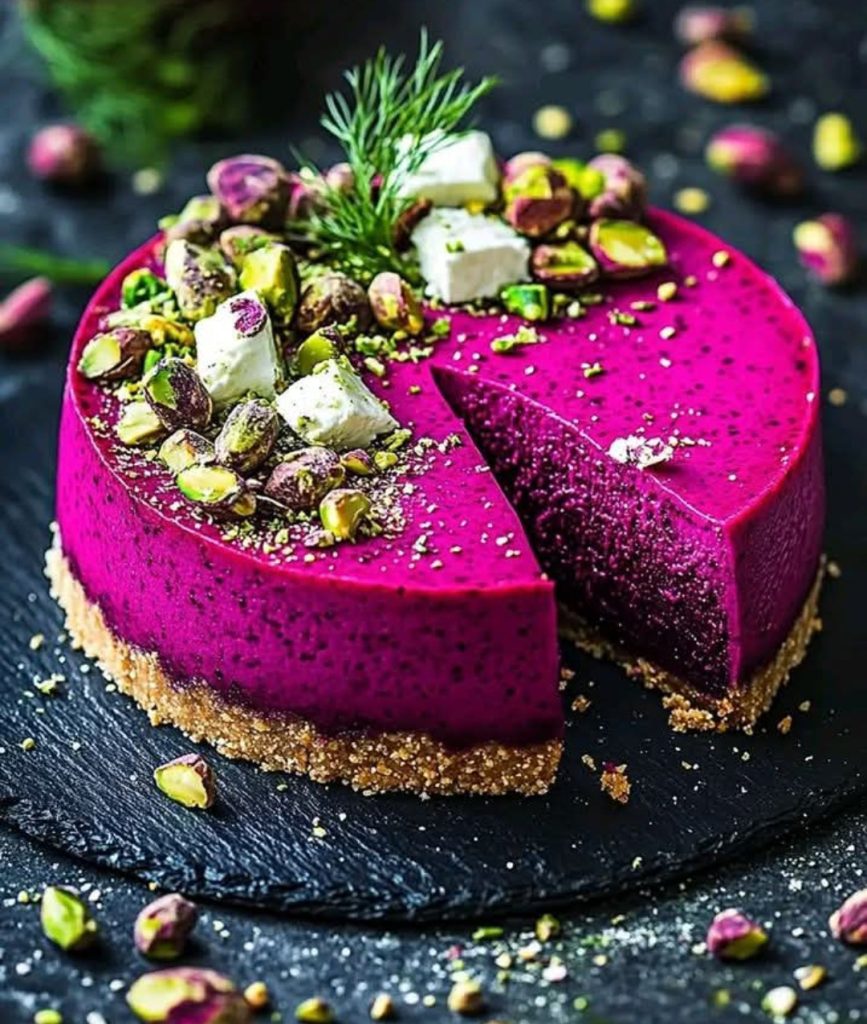 Earthy beetroot blends perfectly with creamy feta and Greek yogurt, creating a smooth, vibrant filling with a beautiful natural pink color. Fresh dill adds brightness while pistachio dust on top brings crunchy texture and a luxurious finishing touch.