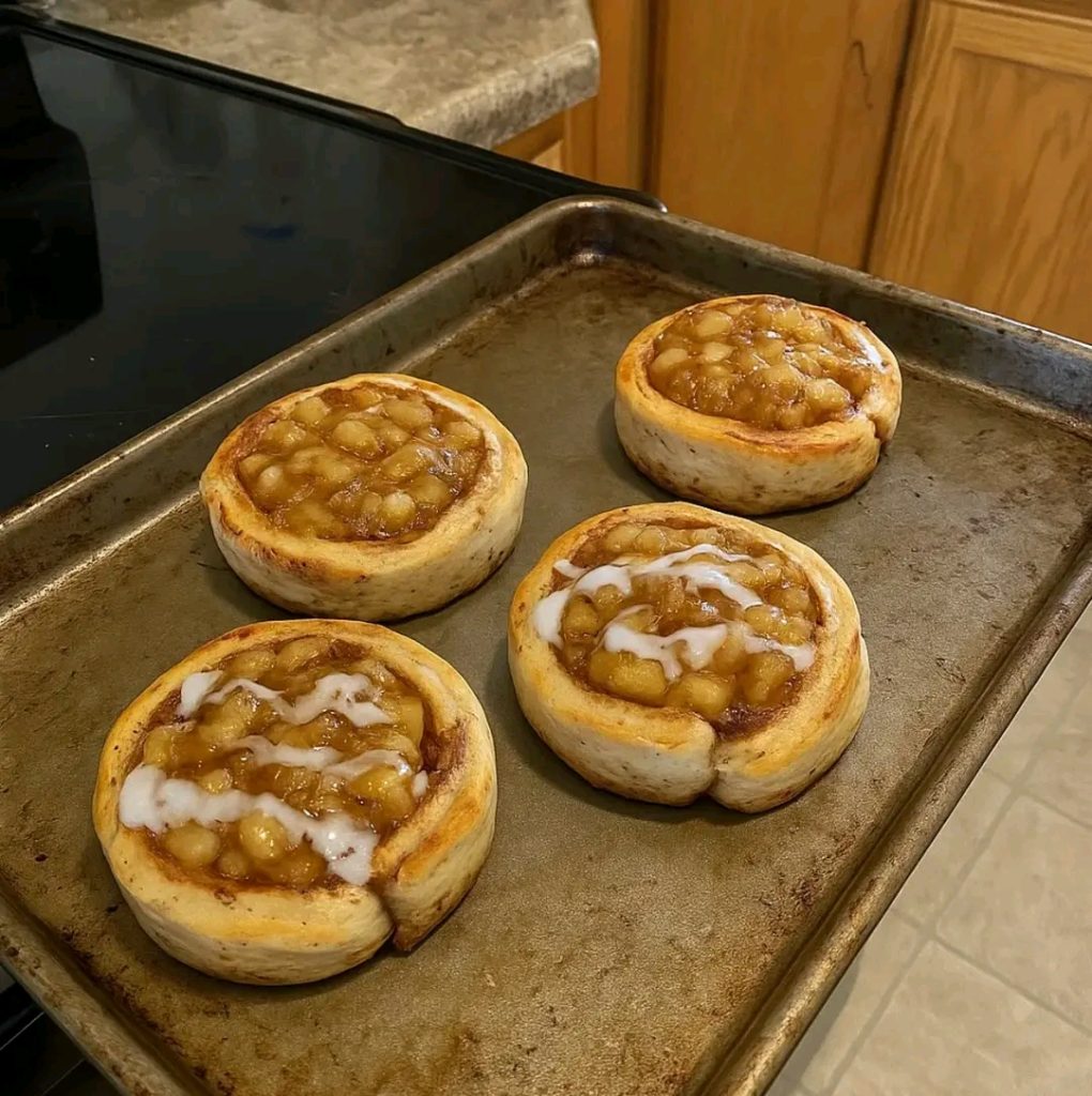 - Place a spoonful of apple filling in the center of each flattened roll.