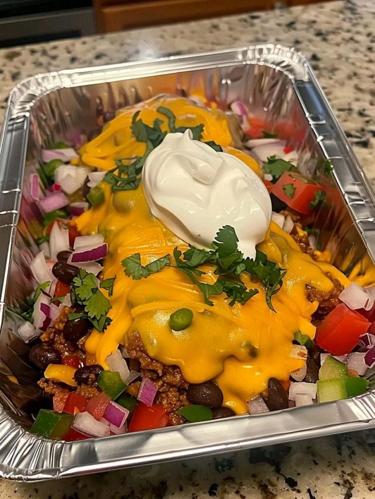 Optional toppings: sour cream, olives, diced jalapeño, avocado, green onions, cilantro, etc.