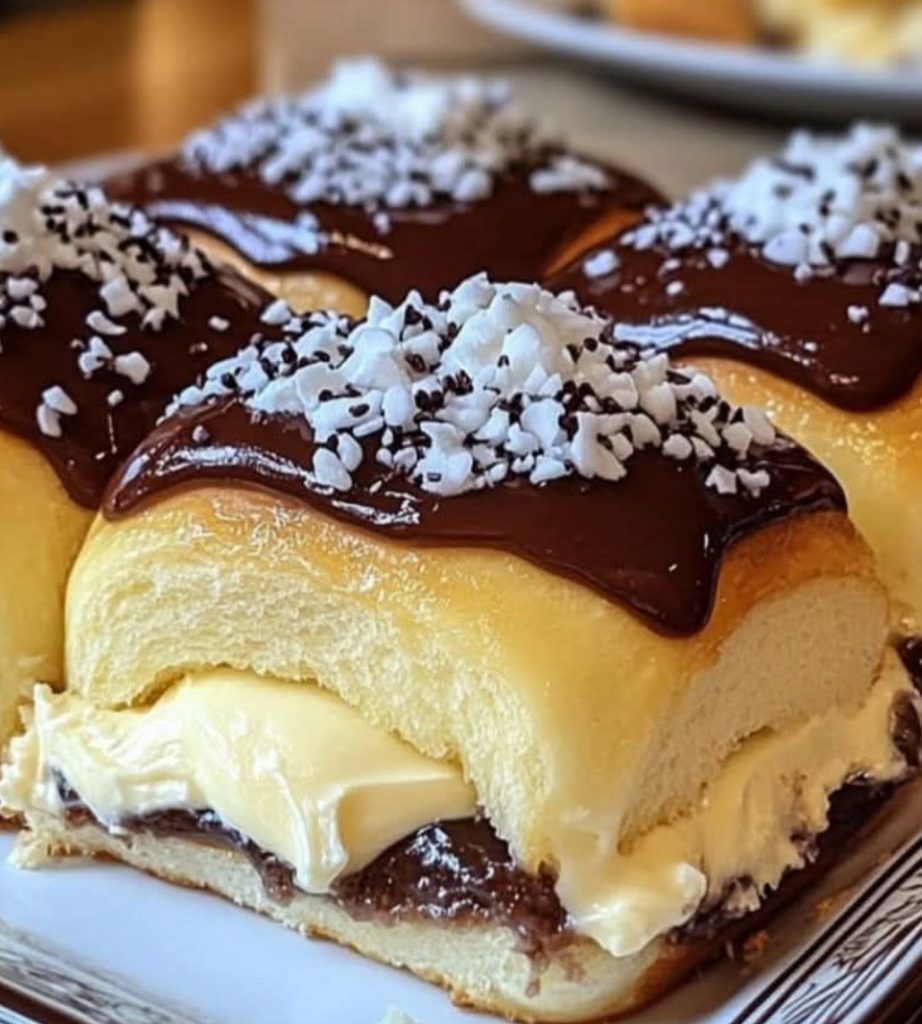 Transfer the chilled custard to a piping bag fitted with a narrow round tip (or use a sturdy zip-top bag with a ¼-inch corner snipped). Insert the tip into each roll and gently squeeze until the roll feels plump but not overstuffed.