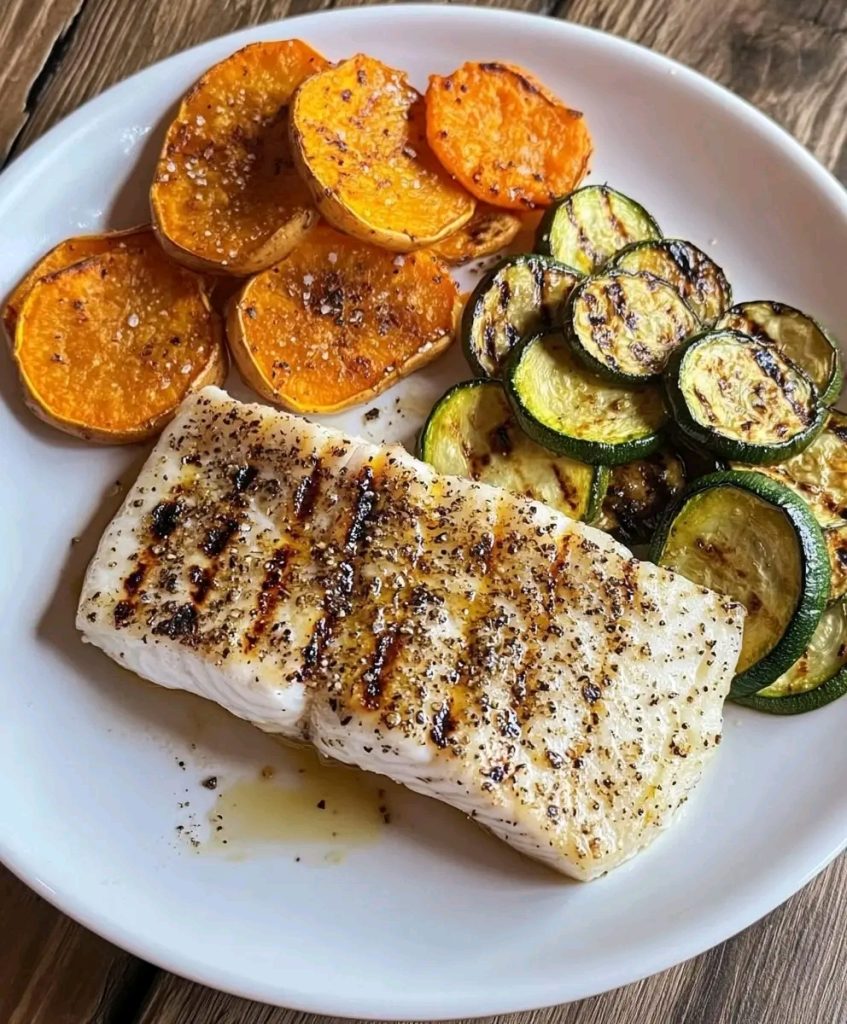 This light and nourishing dish is perfect for a clean, satisfying meal. Tender grilled white fish, caramelized sweet potato slices, and crispy roasted zucchini come together for a balanced plate rich in protein, fiber, and vitamins β all with minimal ingredients and maximum flavor.