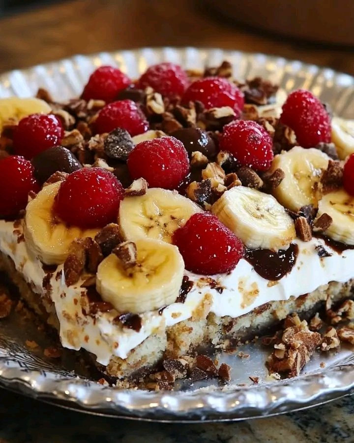 No-Bake Banana Split Dessert is a fun and easy dessert that captures the flavors of a classic banana split without turning on the oven! The creamy, fruity layers paired with a crunchy graham cracker crust make this a perfect treat for summer gatherings, picnics, or any time you want a quick and indulgent dessert.