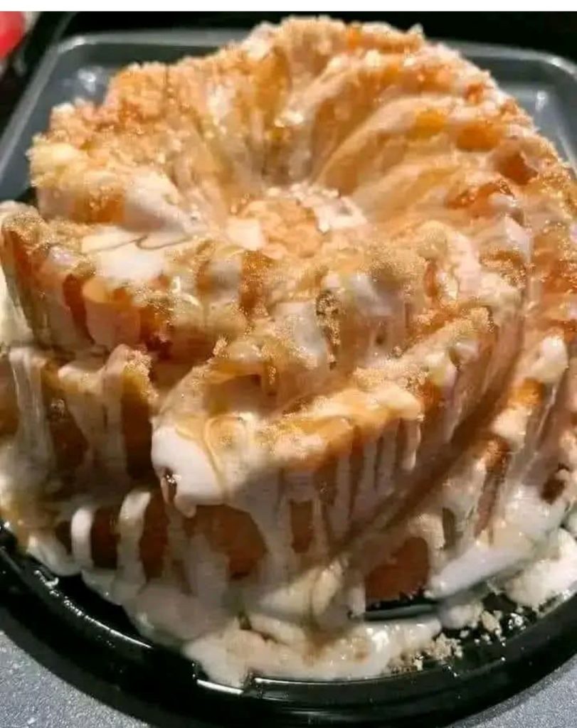 Add vanilla and almond extracts. Slowly alternate flour mixture and milk into the batter until well blended. Do not over mix! Next place half of the batter in the pan then add peach mixture around the layer leaving some to top the cake at the end. Place remaining batter on top of the peach mixture and place in the oven 1hr 15 min…use the toothpick method to detect doneness. Allow to cool for about 30 min then turn over on a platter and top with remaining peach cobbler filling.