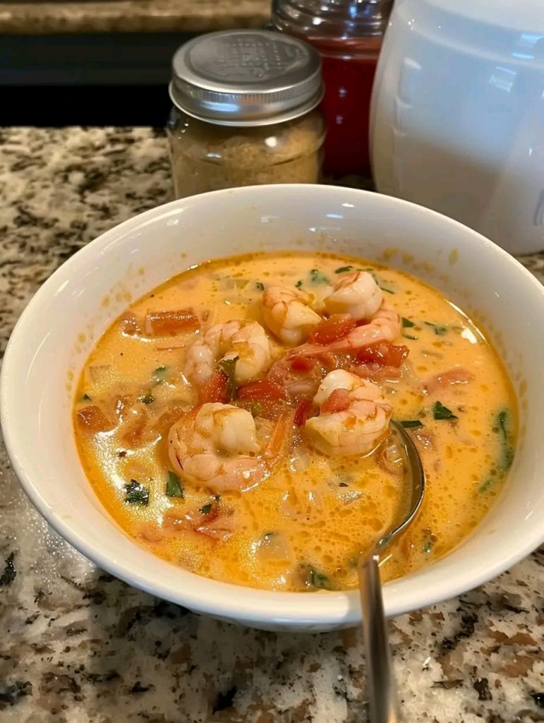 Add the shrimp, diced tomatoes with chiles, and cilantro. Simmer gently until the shrimp turn opaque and cooked through.