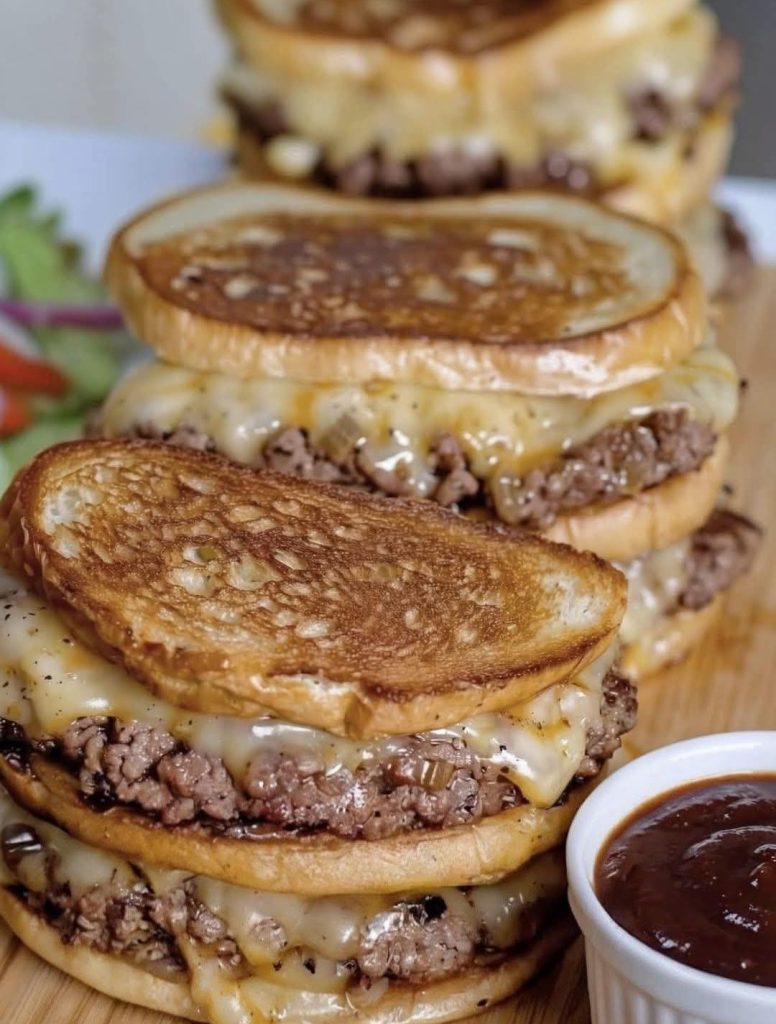 A patty melt is the perfect combination of a juicy hamburger patty, buttery toasted bread, gooey melted cheese, and deeply caramelized onions. It tastes like the best parts of a burger and a grilled cheese combined. Crispy on the outside and tender, melty, and savory on the inside—this comforting sandwich is a true diner classic!