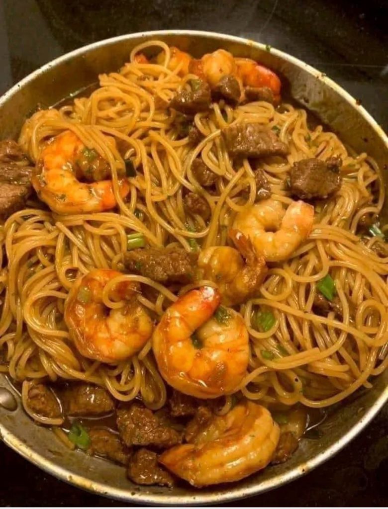 Craving something bold, savory, and a little sweet? These Shrimp & Teriyaki Steak Noodles bring the perfect fusion of flavors—juicy steak, tender shrimp, and silky noodles tossed in a rich teriyaki glaze. Quick, easy, and absolutely drool-worthy! Who’s ready for dinner tonight?