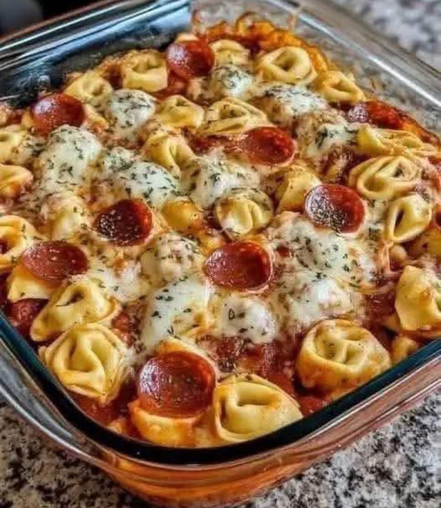 In a large mixing bowl, combine the cooked tortellini, pizza sauce, sliced pepperoni, and half of the mozzarella cheese. If using, add the Italian seasoning, garlic powder, and red pepper flakes. Stir until everything is evenly coated.