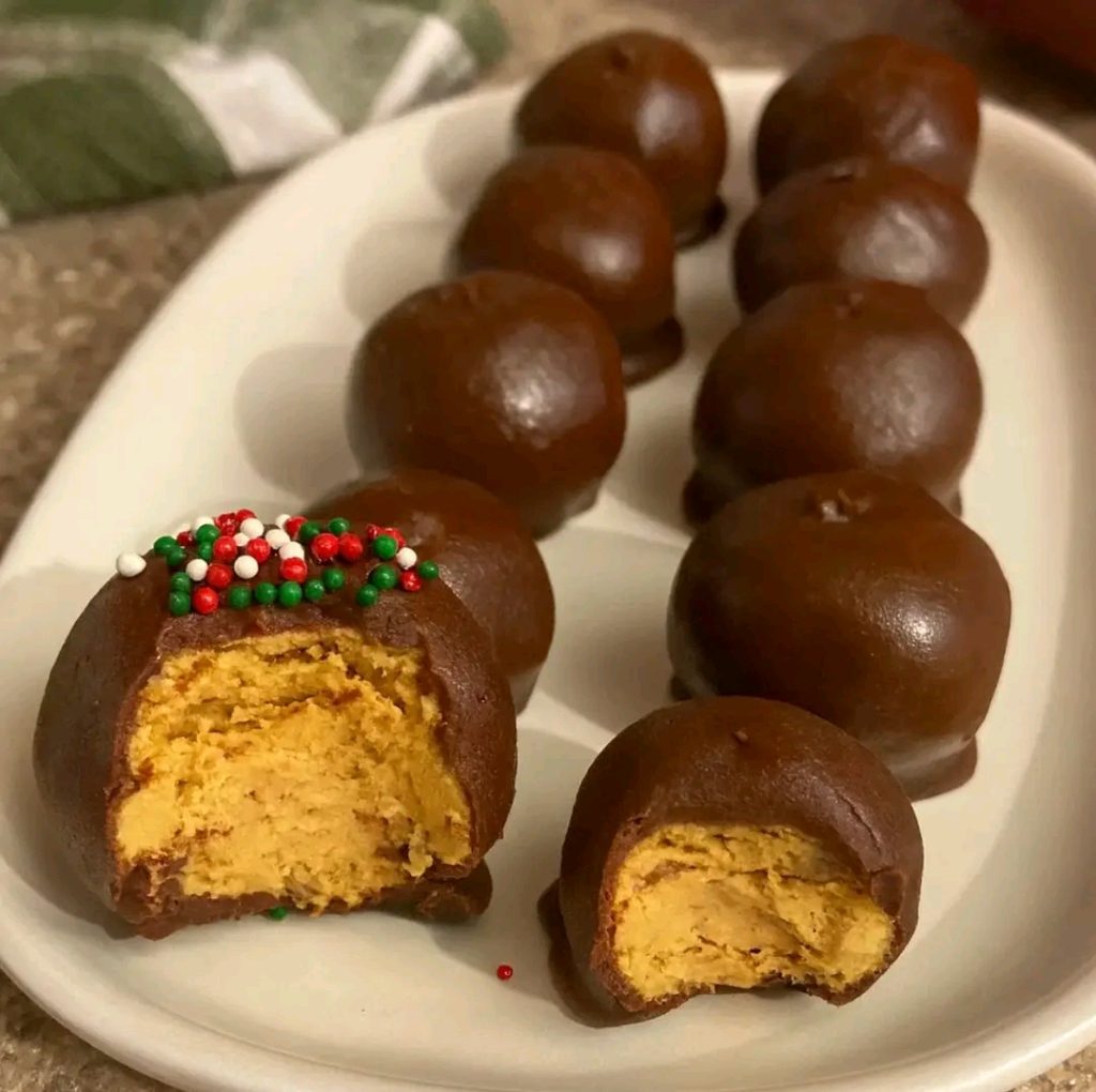 - Dip each peanut butter ball in the melted chocolate, letting the extra drip off.