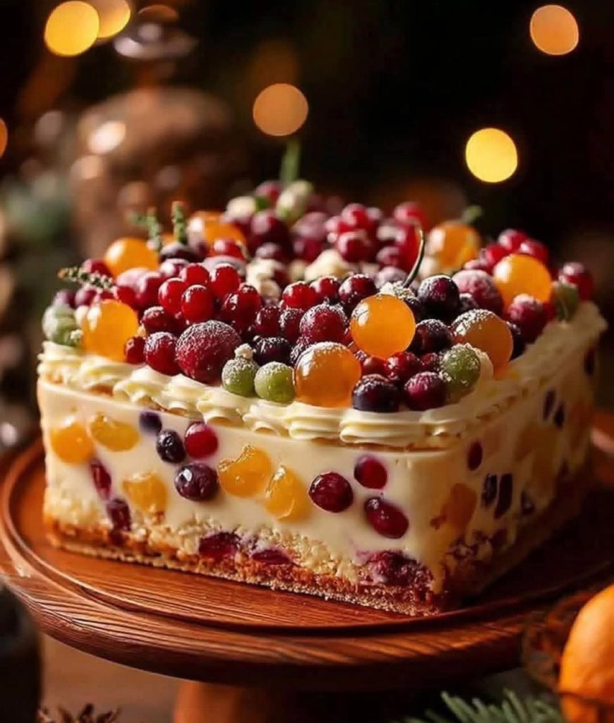A delightful homemade fruit cake packed with dried fruits, nuts, and warm spices, perfect for holidays or special occasions.