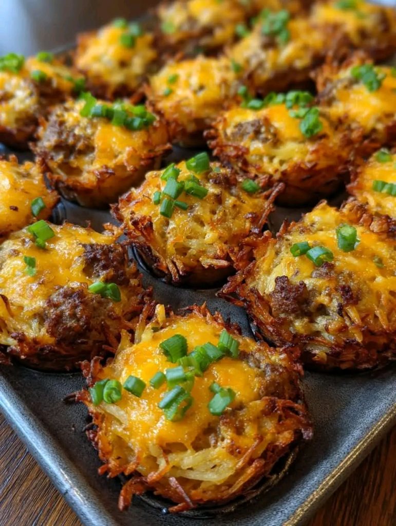 In a large bowl, mix together the thawed hash browns, cooked sausage, cheddar cheese, eggs, green onions, garlic powder, onion powder, salt, and pepper until well combined.