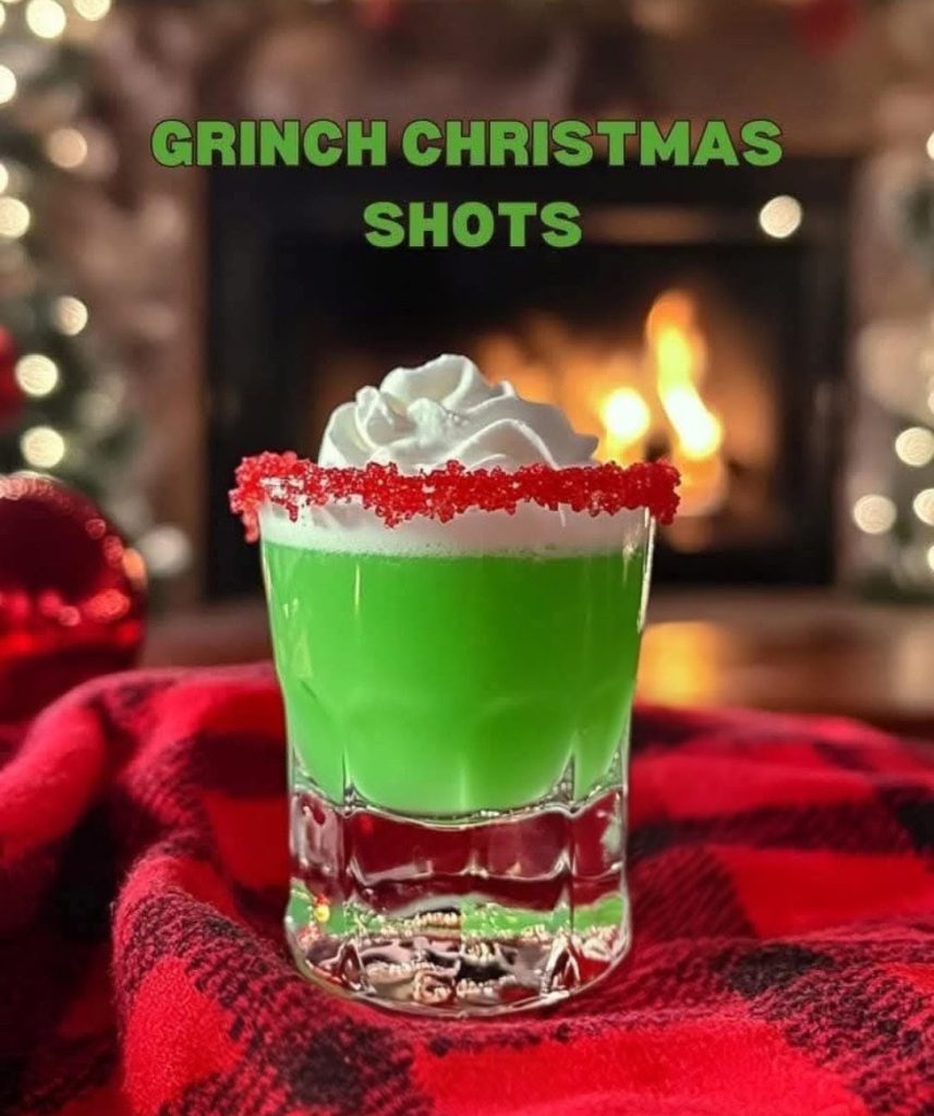 1️⃣ Rim shot glasses with red sugar crystals or sprinkles by dipping the rim in water or syrup and then into the sugar.
