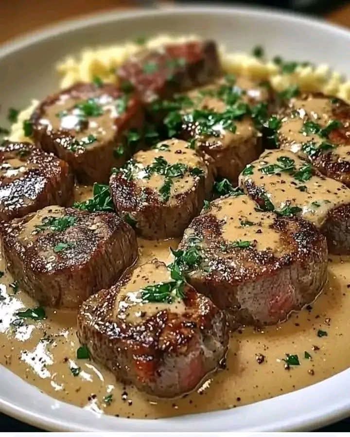 This dish pairs perfectly seared steak with a rich, velvety garlic cream sauce that elevates a simple cut into a culinary experience fit for dinner parties or cozy nights in. The garlic and cream come together to make a sauce that’s bold yet balanced — luxurious enough for special occasions but easy enough for weeknight cooking.