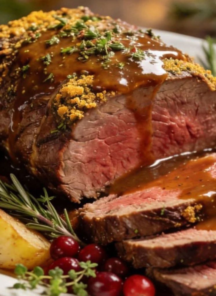 Perfectly medium-rare, wrapped in a golden herb crust, finished with a rich, glossy gravy—this roast beef is pure holiday magic. It’s elegant without being complicated, impressive without being stressful, and honestly… easier than turkey.