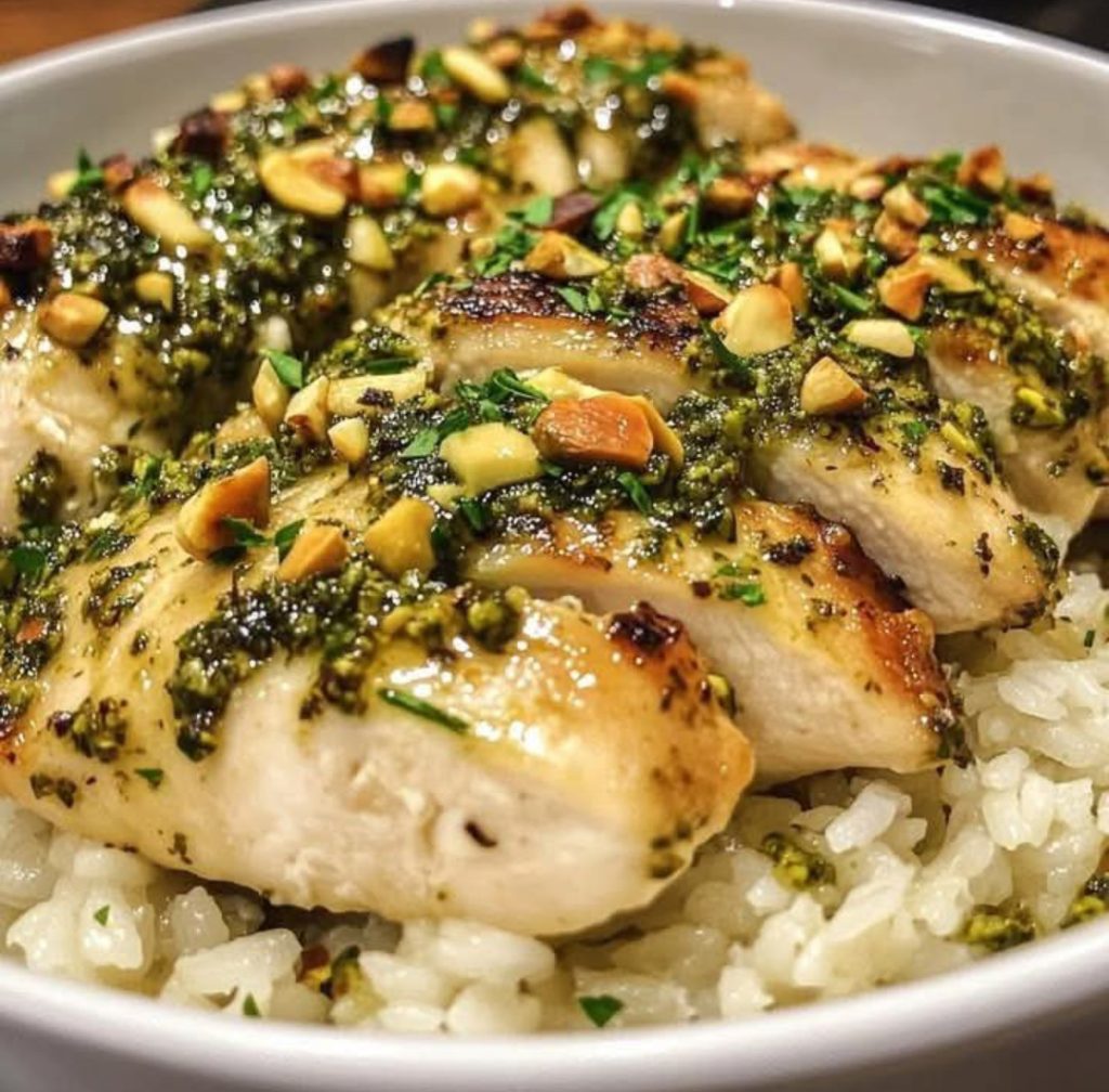 Prepare the Cream Sauce: In the same skillet, reduce heat to medium. Pour in cream and Parmesan, stirring until smooth. Add 1/3 cup of the pistachio pesto and mix well. Return chicken to skillet and simmer for 5–7 minutes.