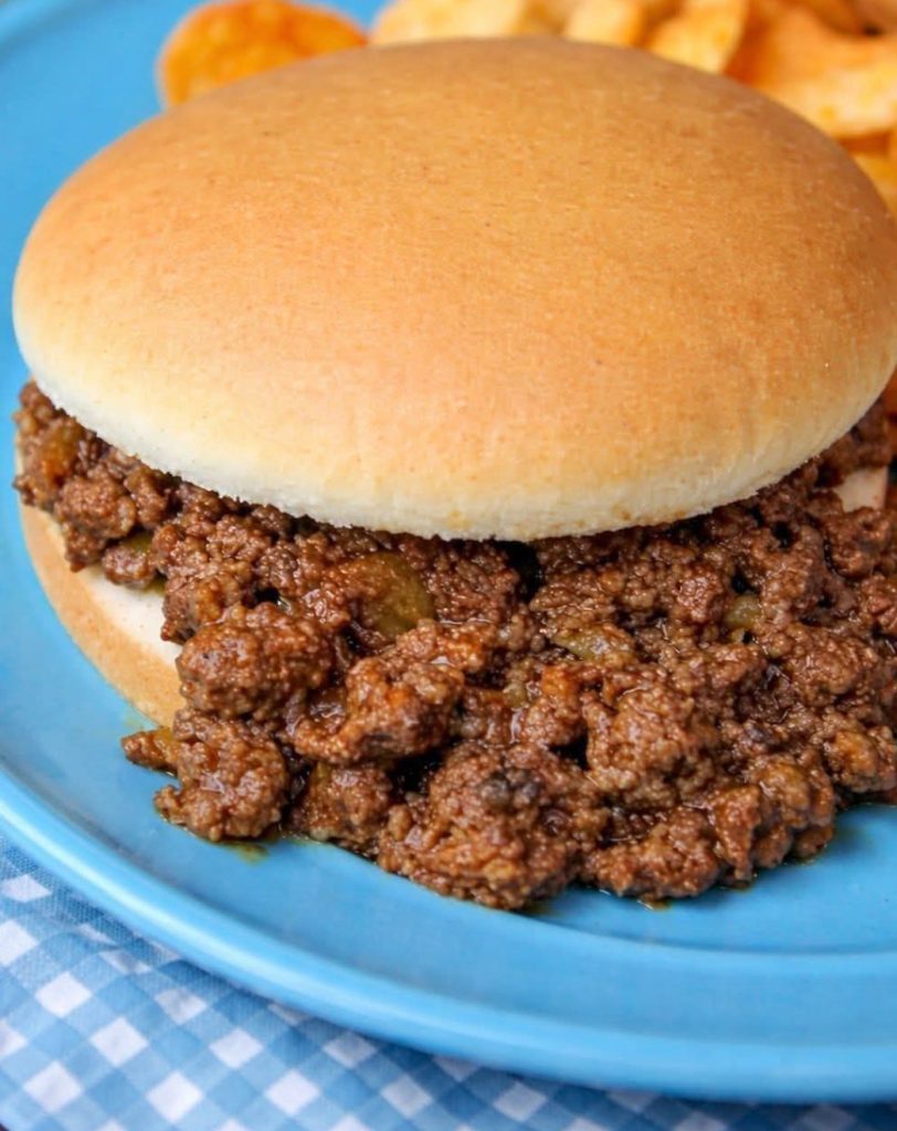 Spoon generous amounts of the sloppy joe mixture onto the bottom halves of the hamburger buns.