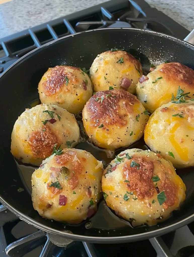 Divide dough into 11–12 balls and place evenly in the skillet.