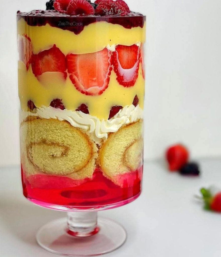 This Berry Custard Trifle is the perfect show-stopper! With layers of soft sponge cake, silky vanilla custard, fresh strawberries, whipped cream, and a glossy berry topping, it’s ideal for parties, family gatherings, or when you want an impressive dessert without complicated baking.