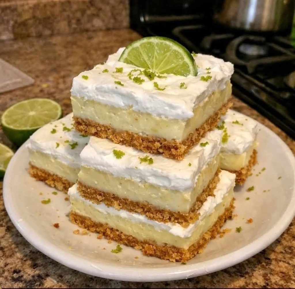These 3-Layer Key Lime Pie Bars are a refreshing, creamy dessert with the perfect balance of sweet and tangy flavors. They start with a buttery graham cracker crust, followed by a smooth and zesty key lime filling, and are finished with a light, fluffy whipped cream topping. Chilled to perfection, these bars are ideal for summer gatherings, holidays, or anytime you crave a bright citrus treat.
