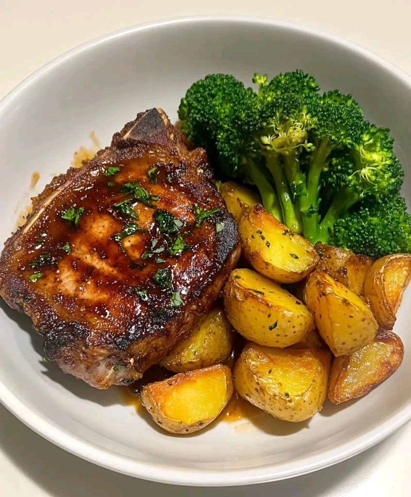 This comfort-food classic hits all the marksβjuicy, caramelized BBQ pork chop, seasoned golden potatoes tossed with herbs, and vibrant steamed tenderstem broccoli. Itβs a high-flavor, no-fuss dinner that feels straight outta a home kitchen cookbook!