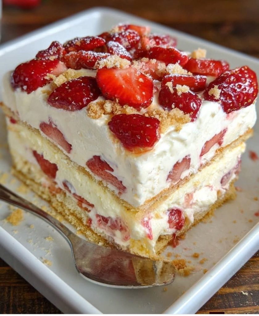 This no-bake dessert is a summer classic, combining fresh strawberries, whipped cream, and graham crackers for a sweet, creamy, and refreshing treat.