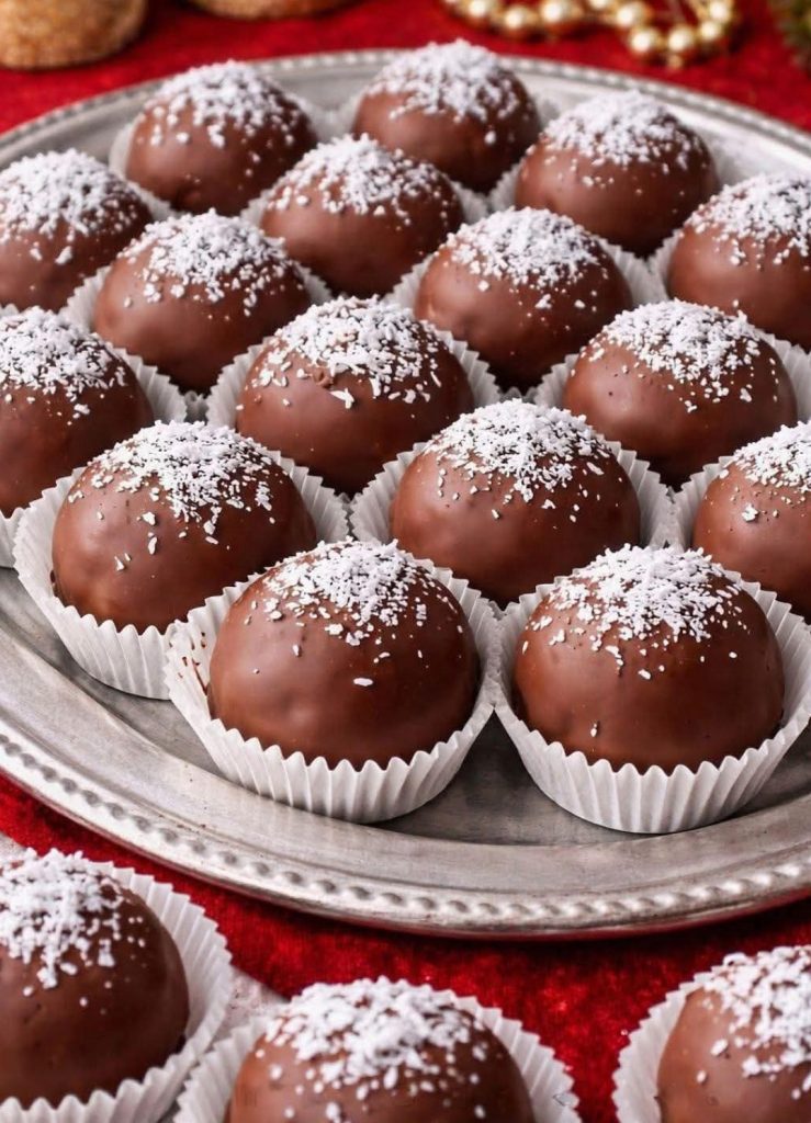 Place on a large tray and sprinkle coconut flakes on top before the chocolate sets.