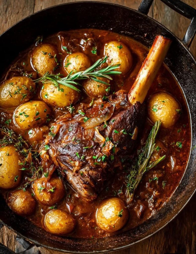 This Lamb Shanks with Bavarian-Style Potatoes recipe is the ultimate comfort dish, combining tender, slow-braised lamb shanks with hearty, flavorful potatoes inspired by traditional Bavarian cuisine. The lamb is cooked low and slow until it’s fall-off-the-bone tender, infused with garlic and aromatic herbs, while the potatoes are golden, buttery, and lightly seasoned for the perfect balance. This dish is ideal for family dinners, special occasions, or whenever you crave a warm, satisfying meal.